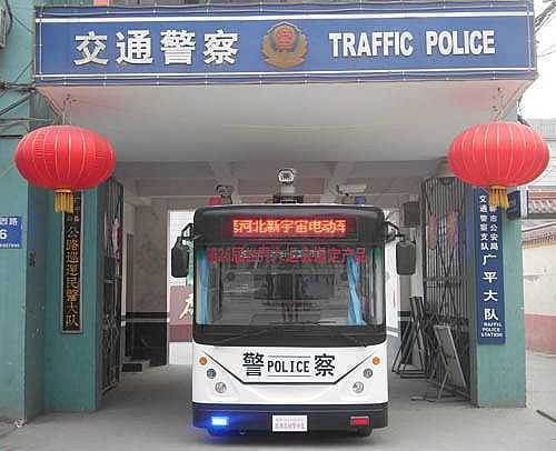 邯鄲廣平縣交警大隊配備躍迪流動警務室 躍迪流動警務室廣平縣交警大隊配備現場 廣平交警大隊執勤人員駕駛躍迪流動警務室上崗執勤,準備出發! 河北新宇宙 電動車 有限公司自主研發生產的躍迪牌流動警務室成功發往廣平縣交警大隊,圖為邯..
