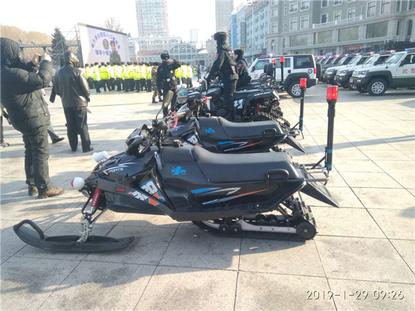 躍迪雪地摩托車,針對北方特殊氣候條件以及實戰需要,加大冰雪路面快速反應能力,適合在冰面、滑雪場等場地開展冰雪路面執法。