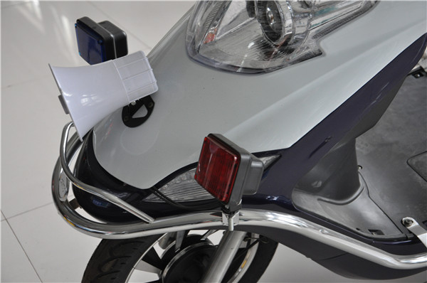 大功率滿盤電機,動力持久強勁,爬坡、載重能力強。微型車專業車架,高強度鋼結構件,整車采用大踏板,前后避震,搭配加固型大貨架,結構硬朗、扎實、穩定。配備電喇叭及后桿式警燈警具,機動靈巧,滿足了隨時移動執勤的警務模式要求,不僅可以近距離服務群眾,還可以及時處置各種警情和治安問題,能夠嚴厲震懾和打擊各類違法犯罪。